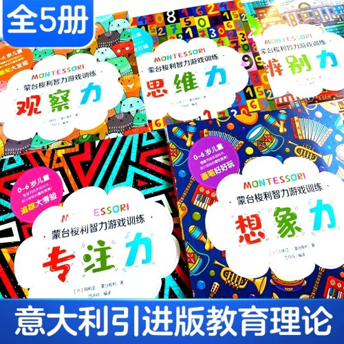 6岁培养开发儿童专注力智力逻辑思维语言能力宝宝婴幼儿教育孩子 全5册 儿童益智书游戏训练0 科学方法书籍 蒙台梭利早教全书