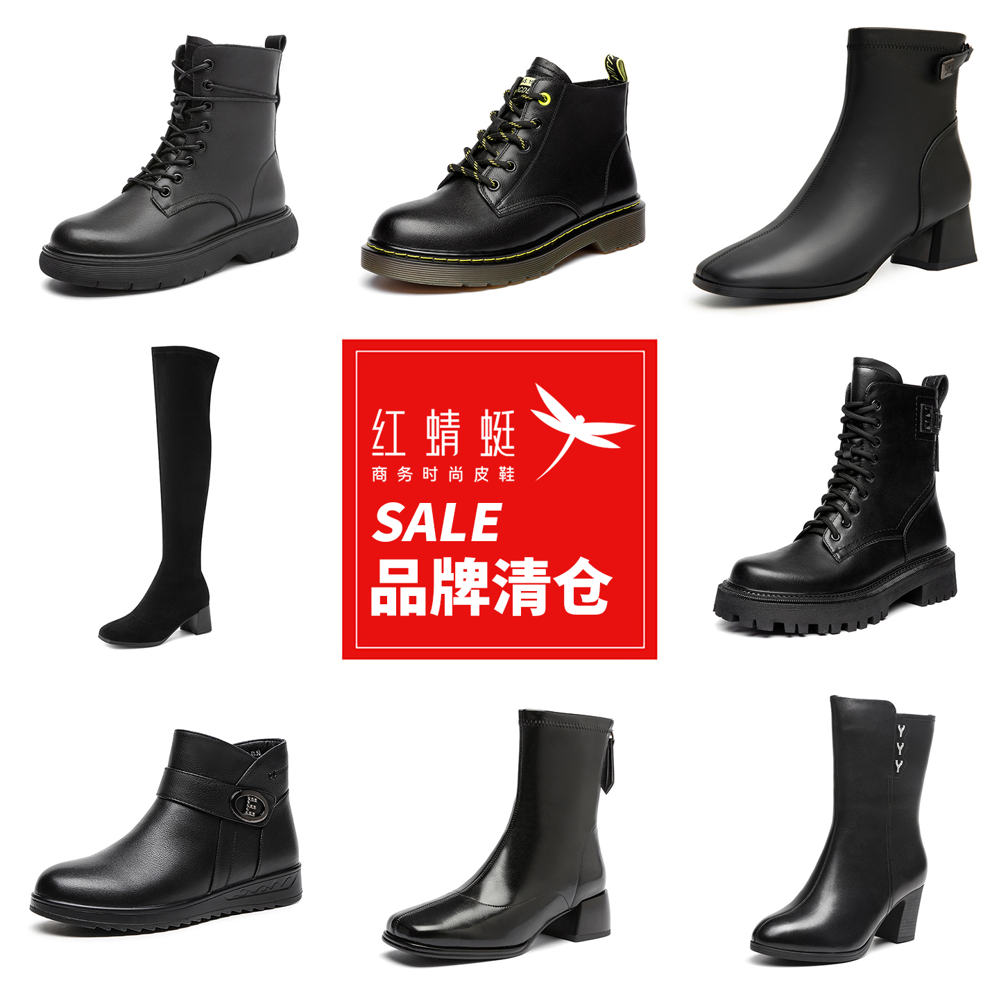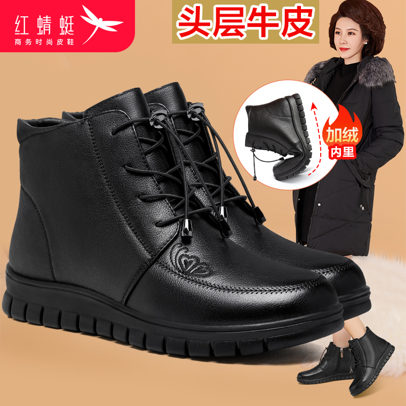 休闲百搭靴加绒加厚保暖短筒靴棉鞋 清仓红蜻蜓女鞋 2023冬新款