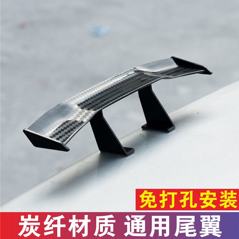 跑碳纤维纹理车翼免打孔 创意mini个性 汽车装 饰迷你尾翼小飞机改装