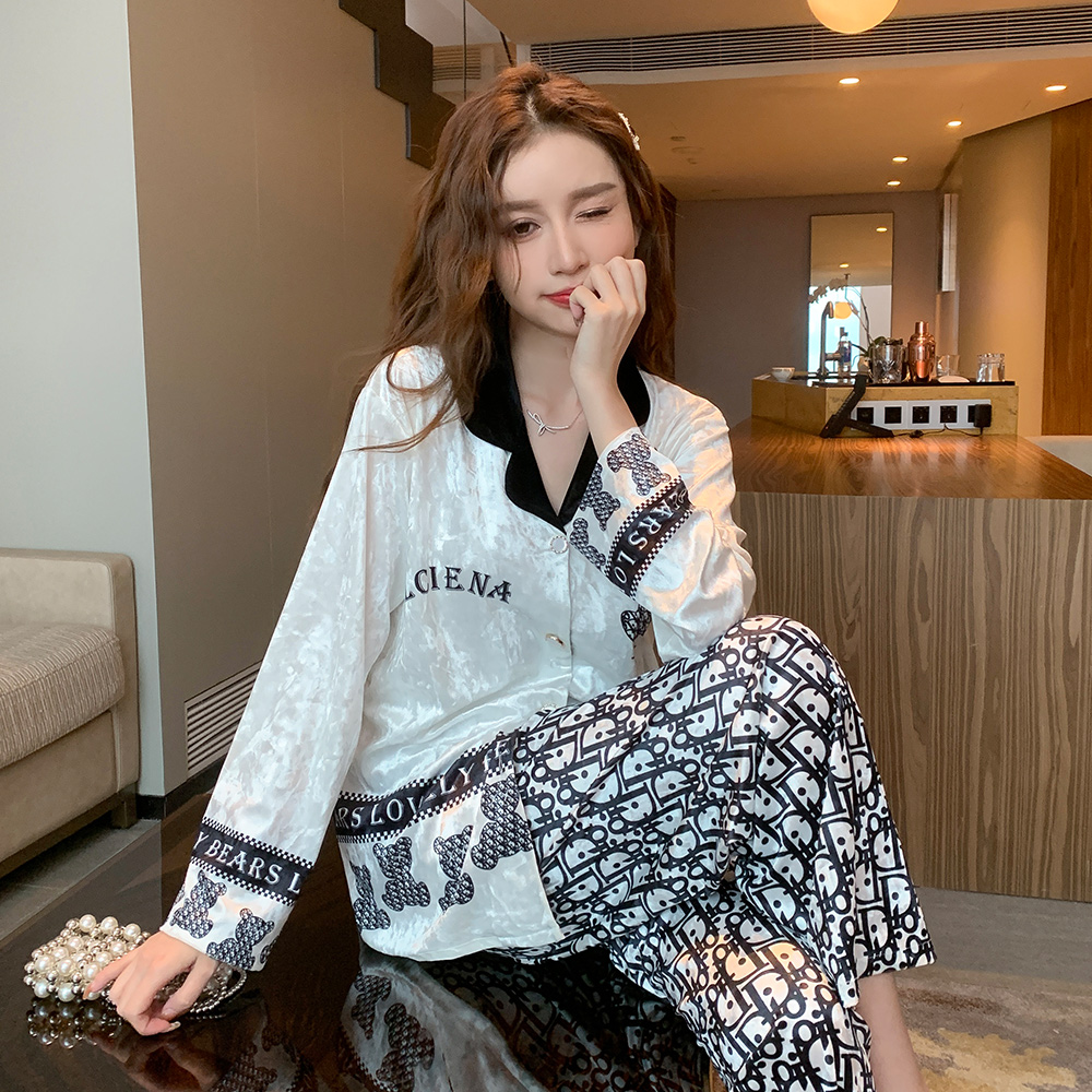 甜美可外穿家居服套装 猫人带胸垫睡衣女款 2025新款 纯棉长袖 春秋季