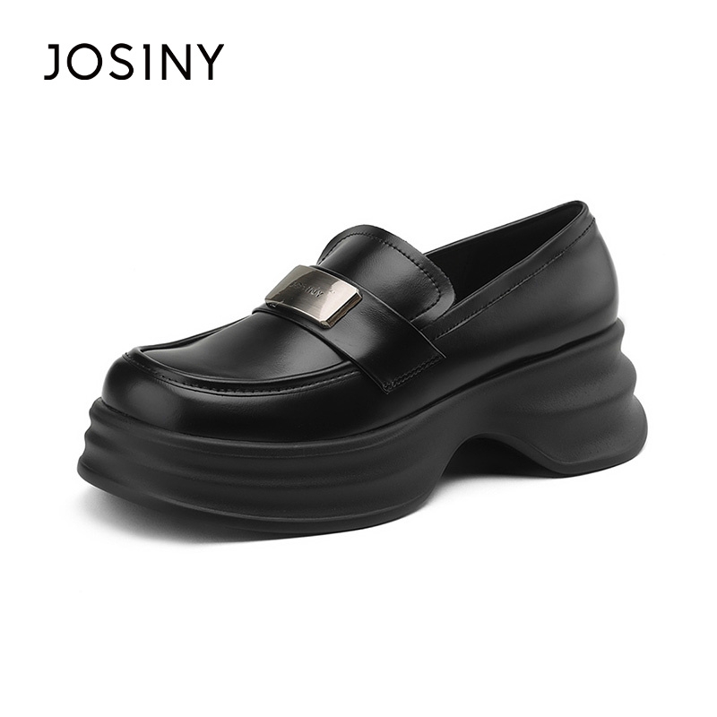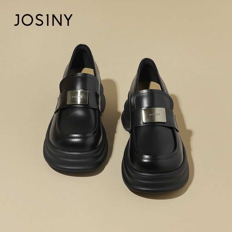 胡连馨同款 皮鞋 千百度厚底真皮乐福鞋 新款 深口单鞋 女2025秋季