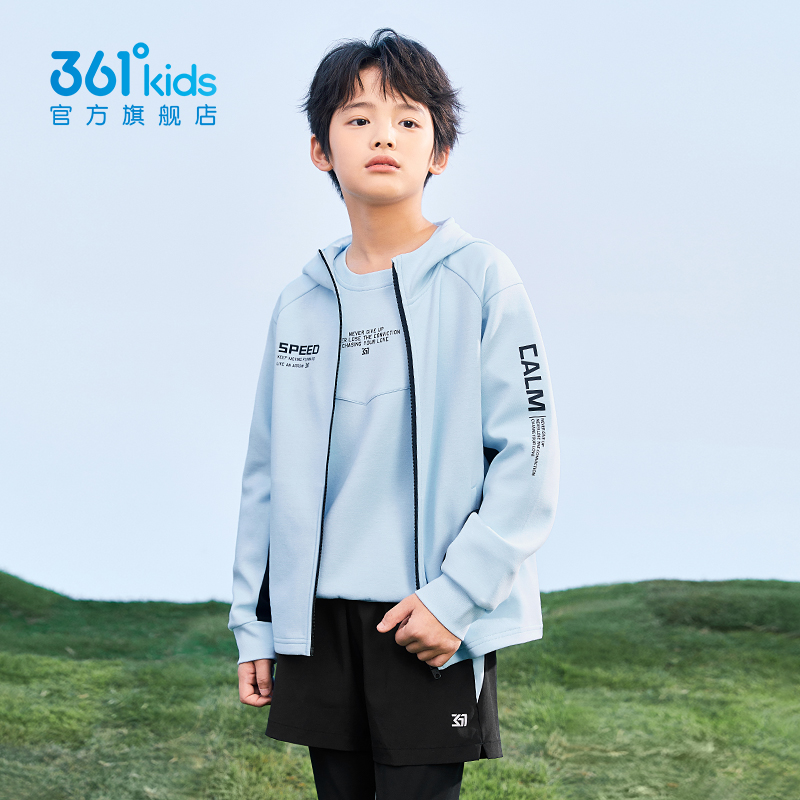 361童装 中大童运动撞色拼接连帽 男童连帽针织外套2025春秋新款
