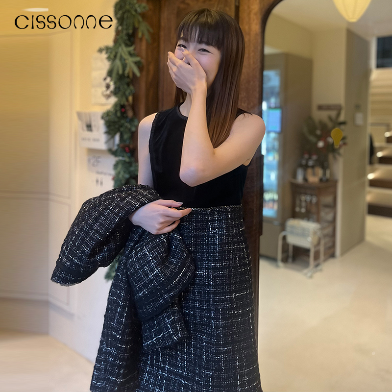 两件套裙子女装 侧边抽绳吊带裙罩衫 503624 三福连衣裙2025秋季