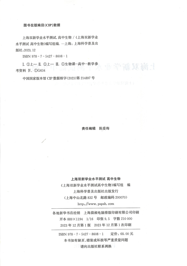 社 上海科学普及出版 2024上海双新高中生物学业水平测试附赠模拟试卷 上海高中学业水平生物复习用书生物