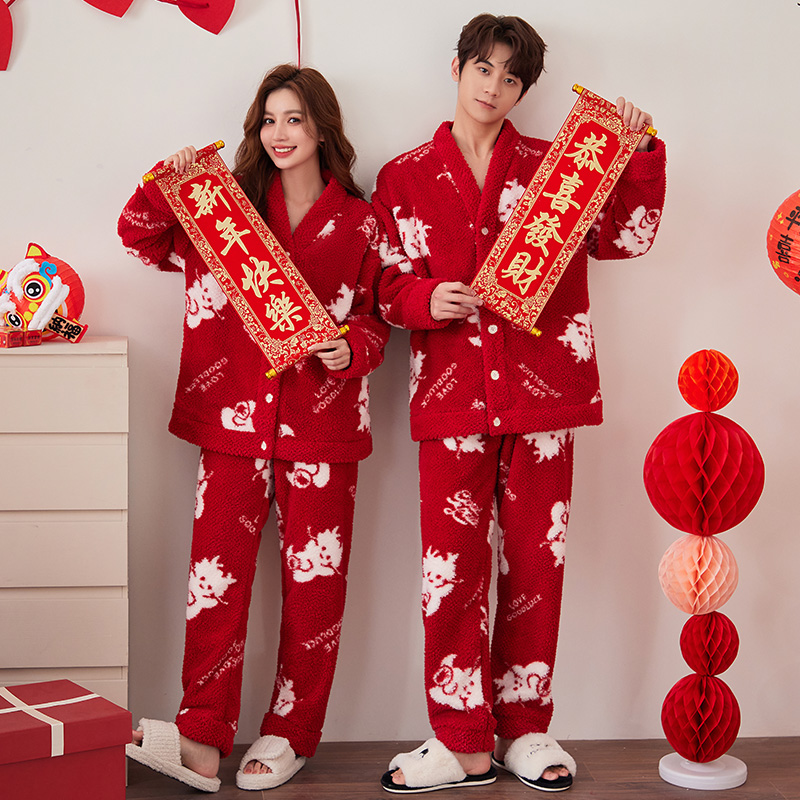 家居服套装 女款 法兰绒情侣龙年本命年红色珊瑚绒男士 睡衣秋冬季