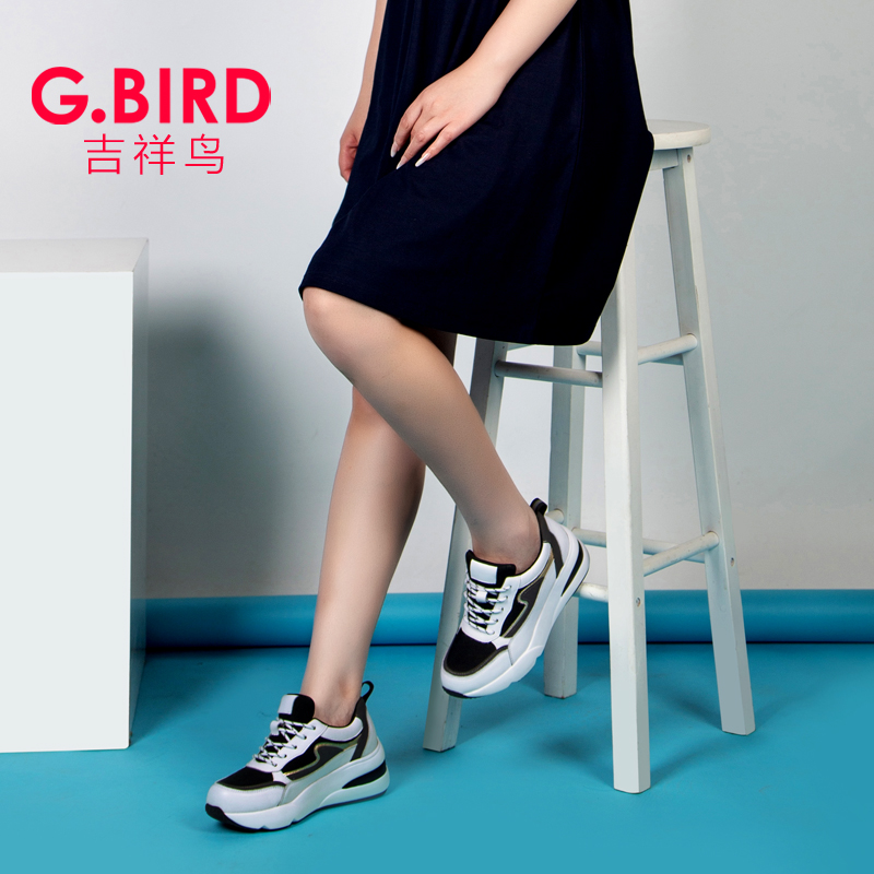厚底松糕系带增高1008 真皮休闲百搭摇摇鞋 吉祥鸟超轻女鞋 2025新款