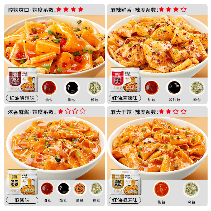 拌面泡面速食方便面宵夜板面 2提四口味组合装 阿宽红油面皮经典 装