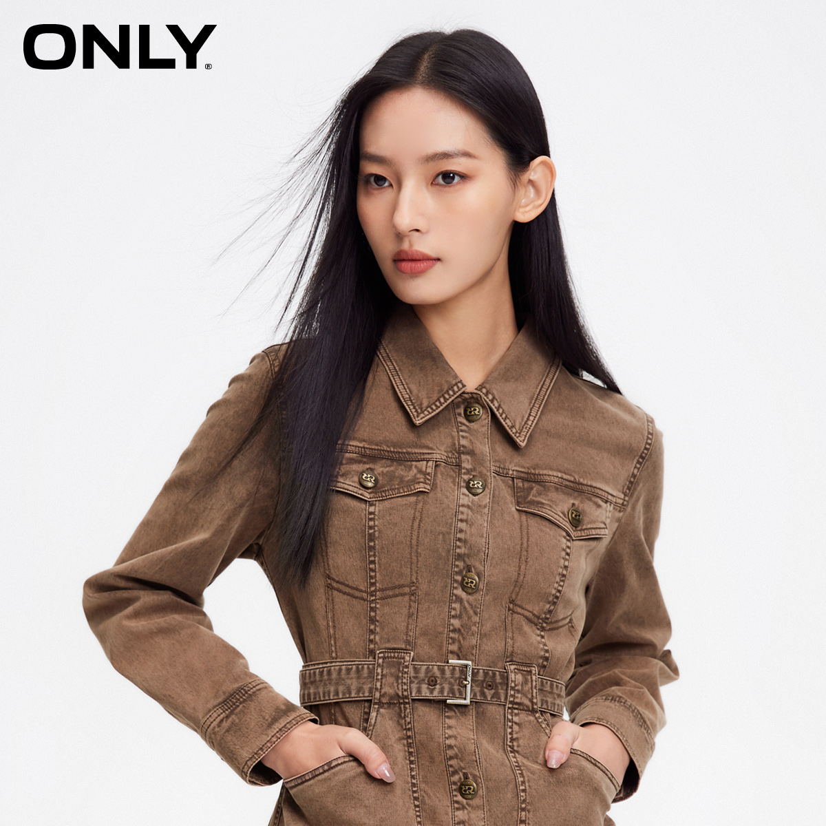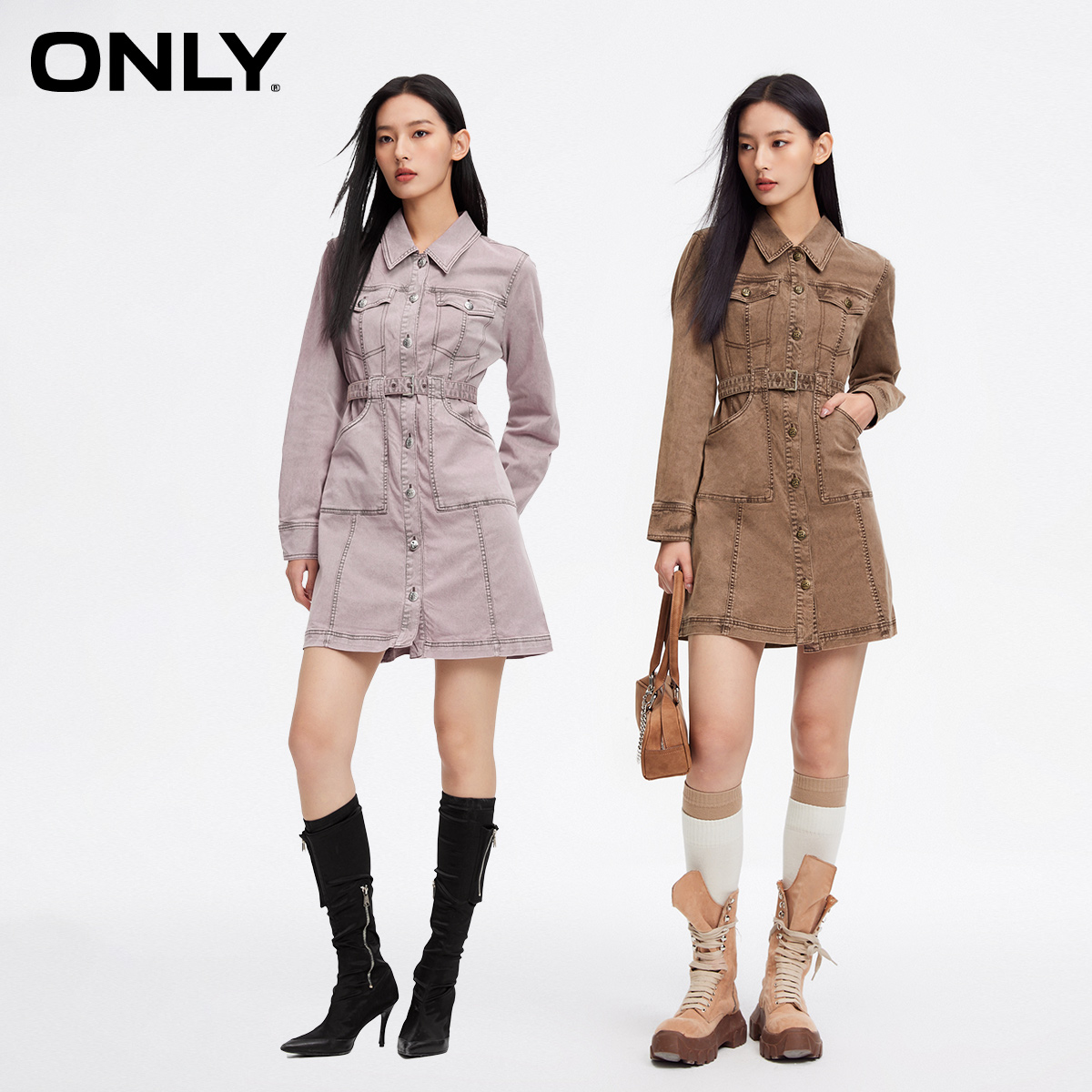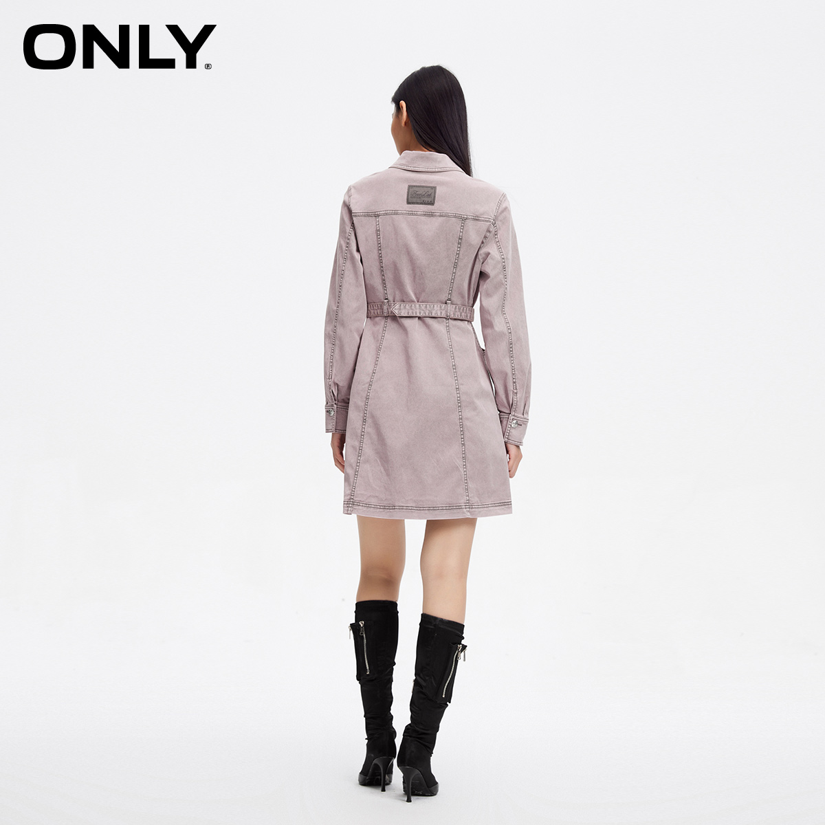 衬衫 藏青色长袖 连衣裙气质收腰流行缎面裙子女 新款 DPLAY2025秋季