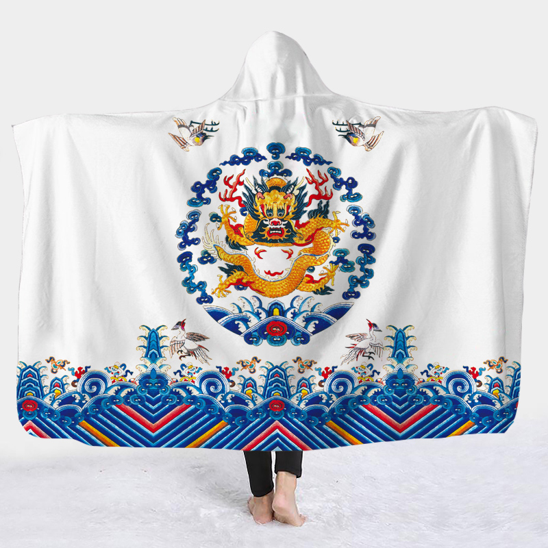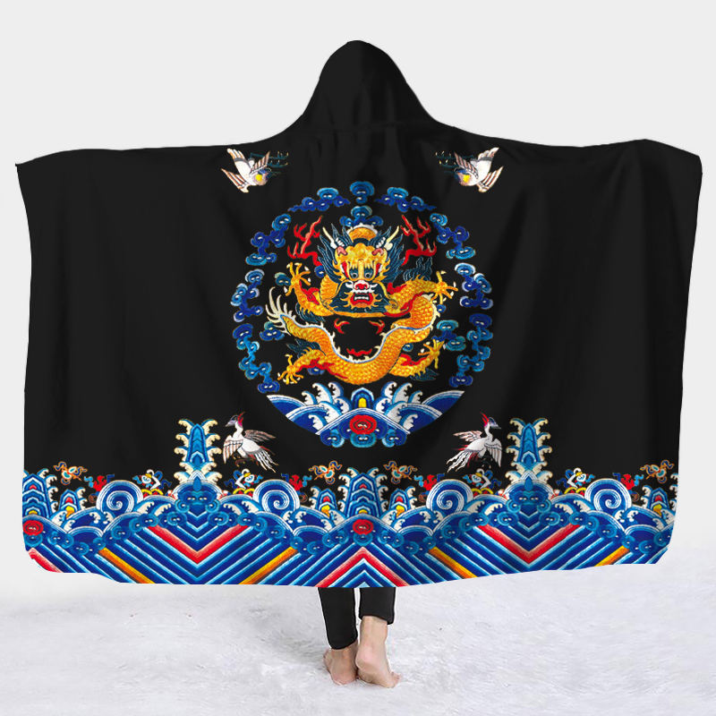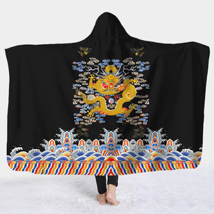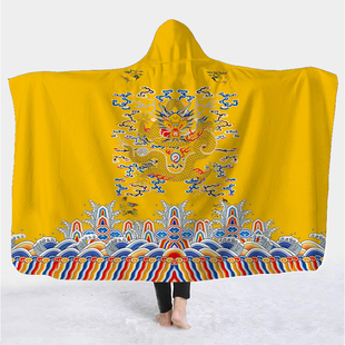 皇帝龙袍国风斗篷可穿式 加厚盖毯披风 懒人毛毯办公室午休披肩冬季