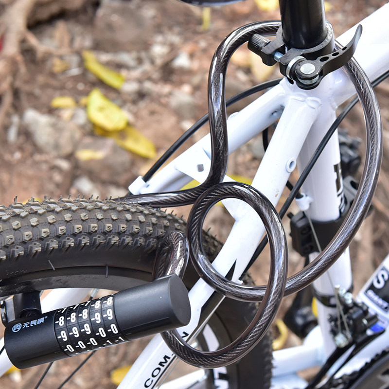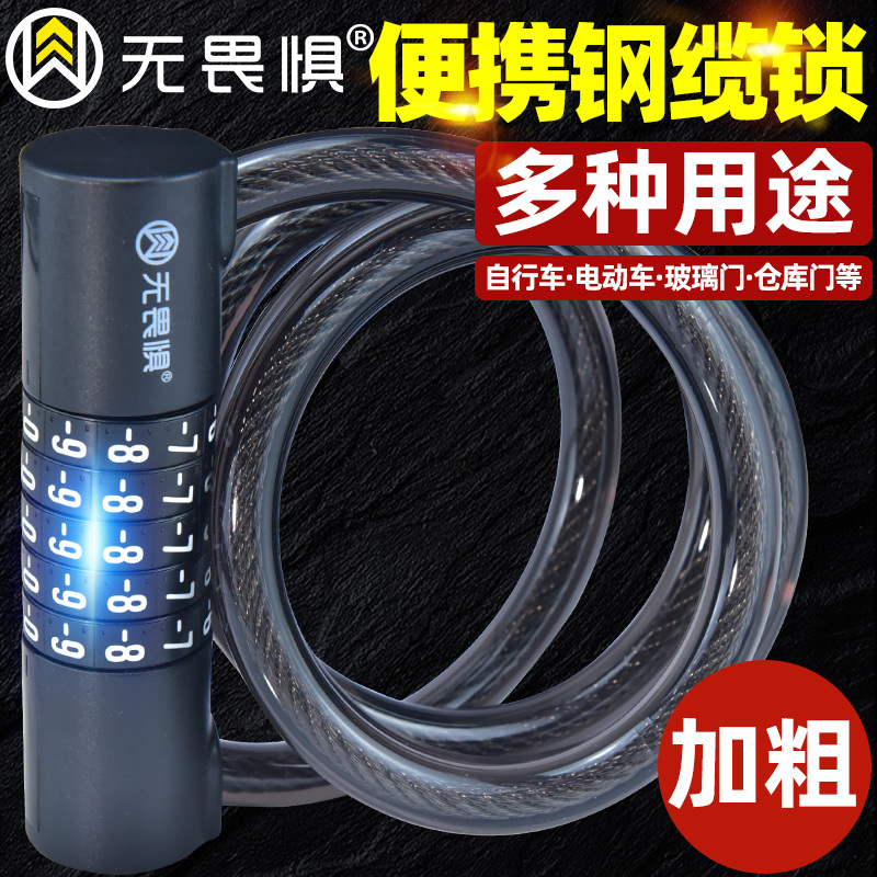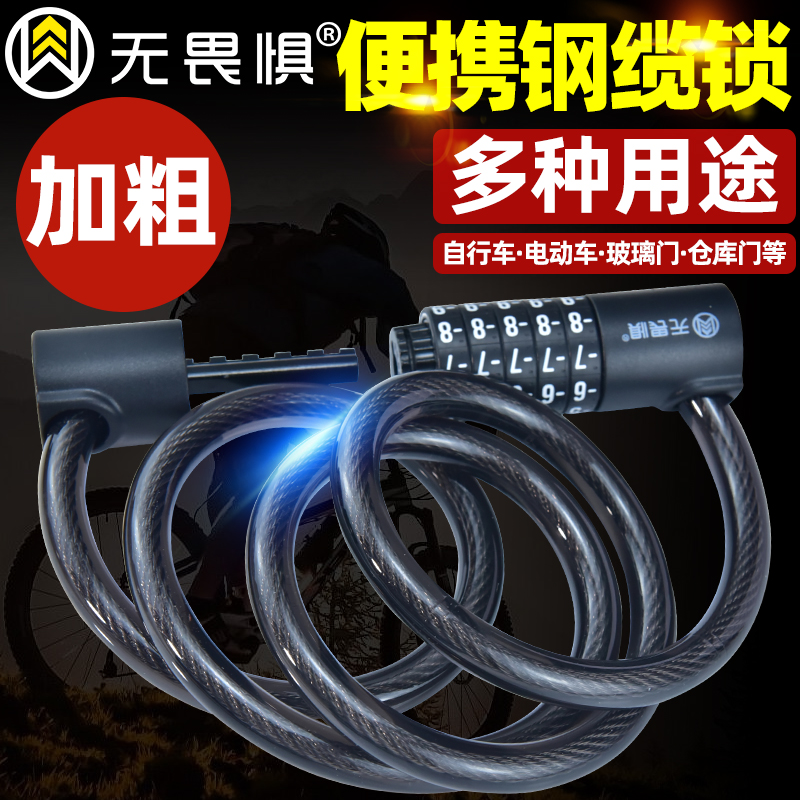 无畏惧自行车锁防盗密码 锁链条锁电瓶电动车锁山地单车便携钢丝锁