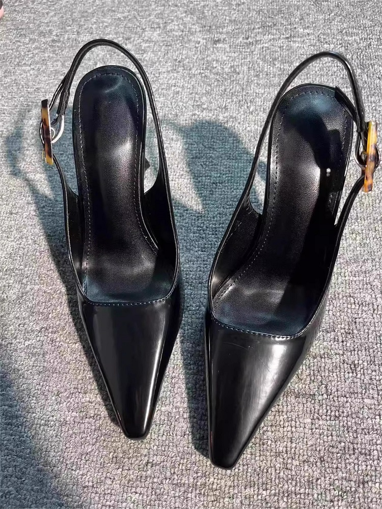 漆皮细跟性感高跟鞋 新尖头后空单鞋 女2025春季 朴彩英rose包头凉鞋