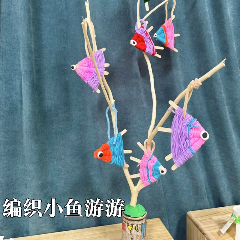 幼儿园中大班创意diy毛线编织鱼手工教学区角区域环创装 饰材料包