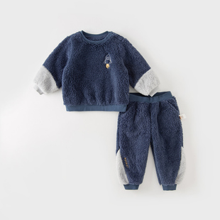 冬装 戴维贝拉男童家居服套装 儿童加绒睡衣男宝宝童装 清仓特价