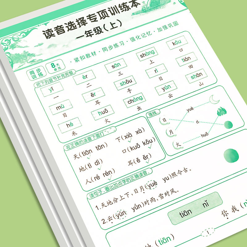 一年级拼音专项训练拼读生字注音教材同步练习册天天练上下册过关测试卷人教版 看拼音写词语生字注音读音选择