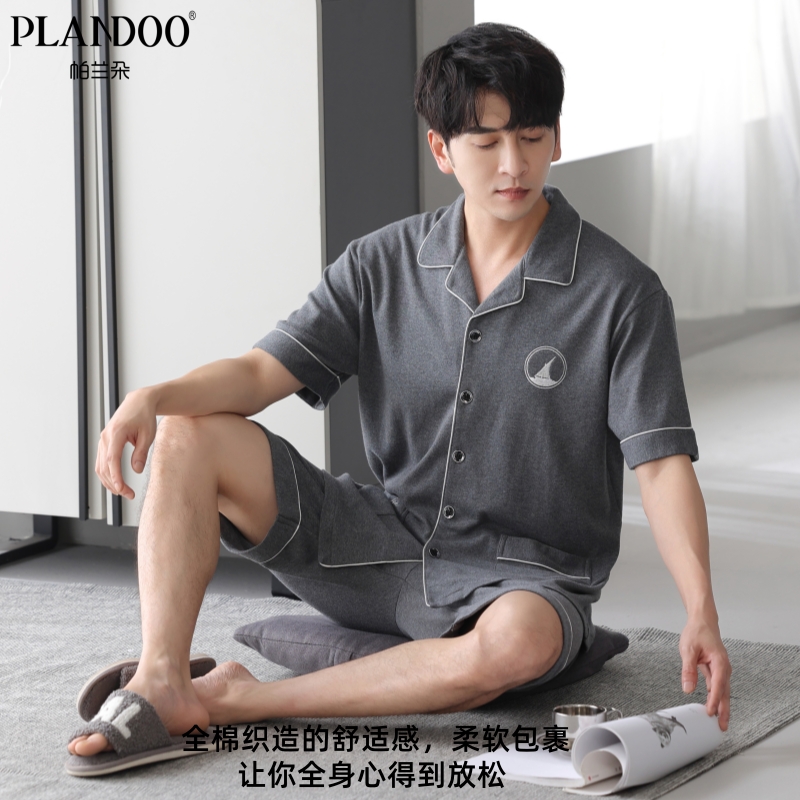 家居服可外穿套装 帕兰朵睡衣男士 开衫 短裤 高级感 纯棉宽松舒适短袖