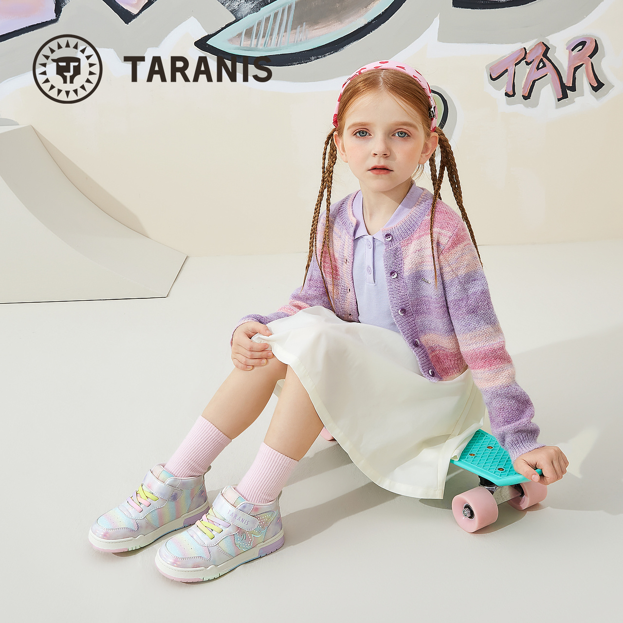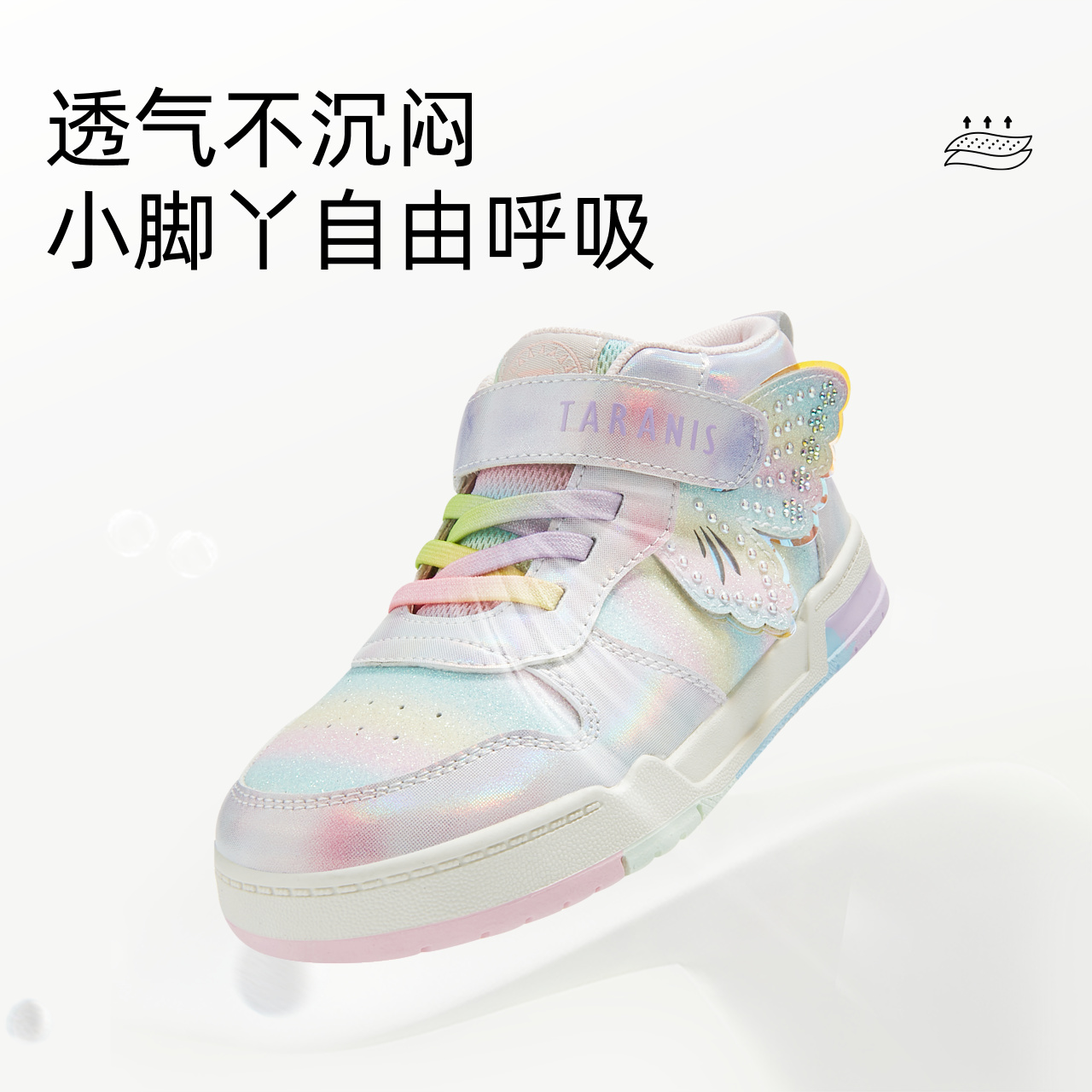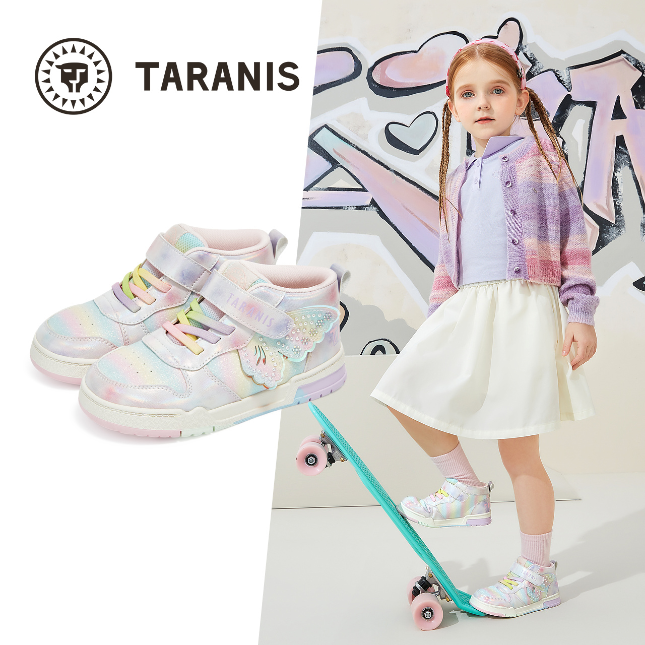 软底防滑撞色高帮休闲鞋 泰兰尼斯春秋款 时尚 儿童运动鞋 子 女童板鞋
