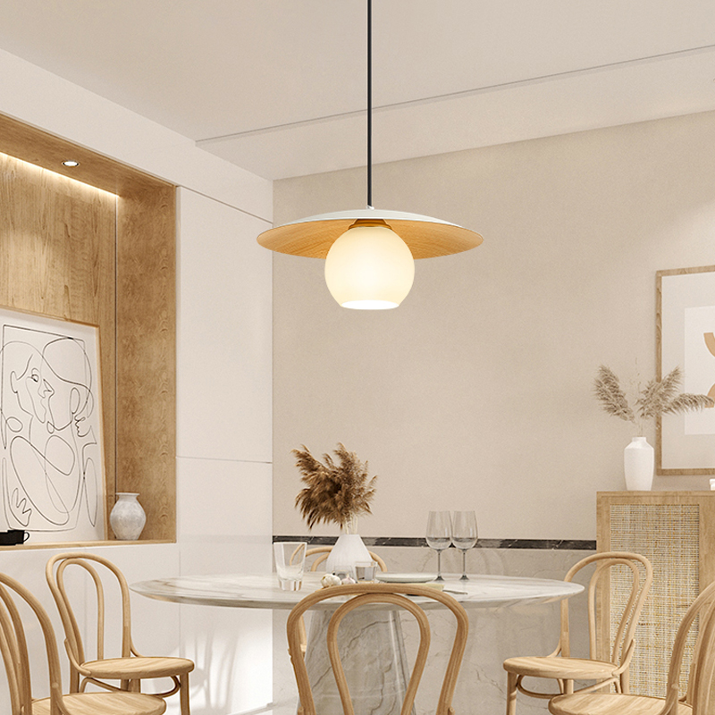 餐厅灯北欧胡桃木纹色餐桌吊灯现代简约单头圆盘卧室床头灯吧台灯