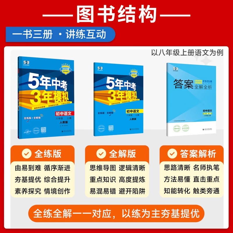 2025秋新五三五年中考三年模拟八年级上下册数学物理必刷题语文英语政治历史人教版 真题同步练习地生会考复习讲解资料书 北师译林版