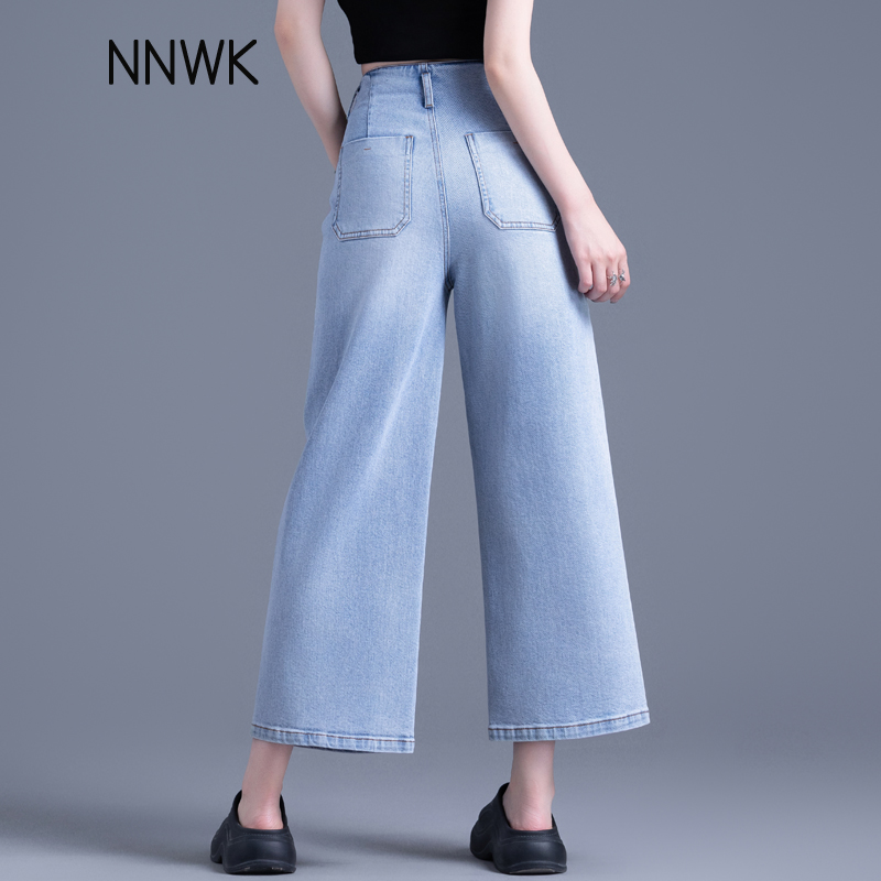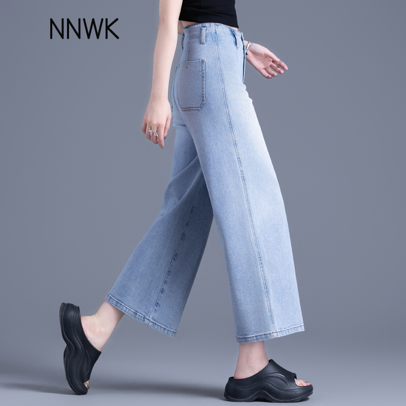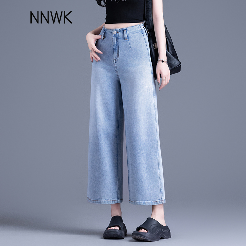 夏季 女2025新款 裤 子时尚 清仓浅蓝色高腰窄版 九分阔腿裤 直筒牛仔裤