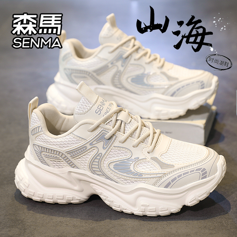 子 厚底增高休闲情侣透气运动鞋 骆驼银月户外复古老爹鞋 女2025新款