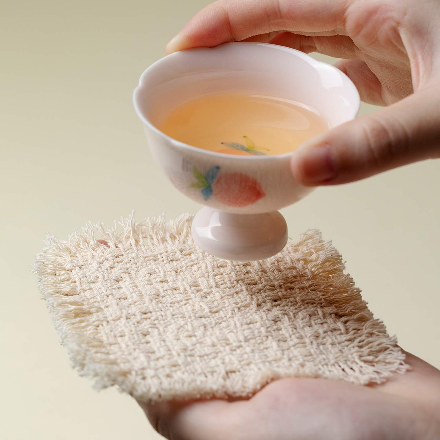 里作 棉麻手工壶垫杯垫刺子绣隔热垫防水苎麻流苏干泡茶席垫 日式