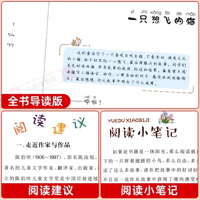 浙江教育出版 陈伯吹快乐读书吧部编人教版 社小学生课外阅读书籍大语文儿童读物故事书带拼音 猫二年级上册注音版 一只想飞