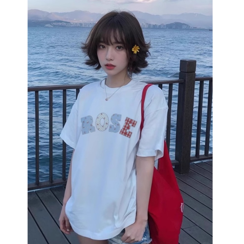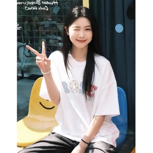 白灰色半袖 漂亮小衫 夏超好看温柔独特上衣 t恤女2025新款 纯棉短袖