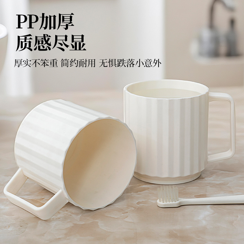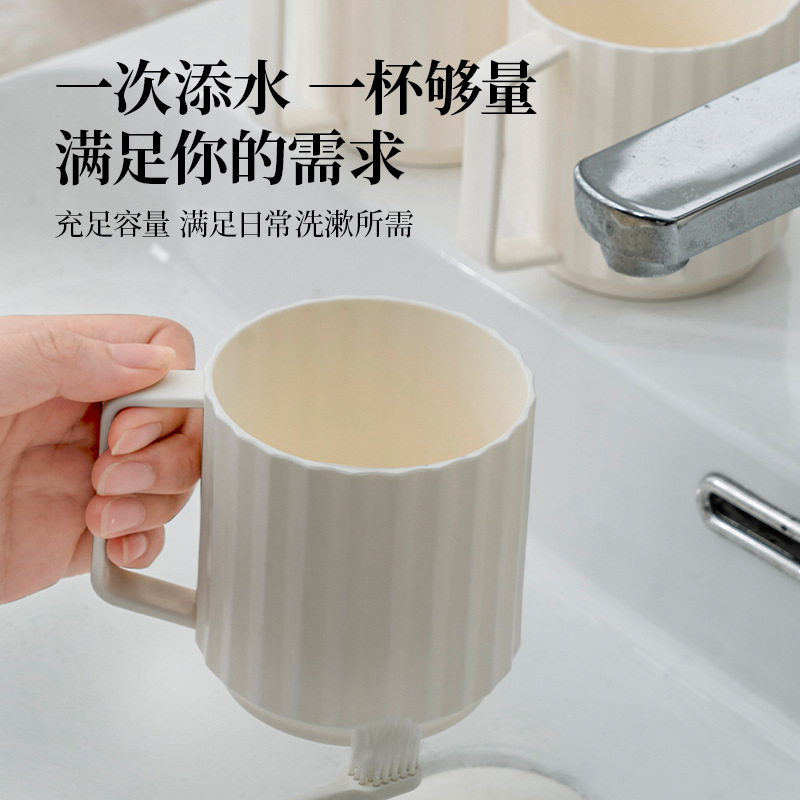 竖条纹漱口杯高颜值家用卫生间情侣牙刷杯大容量手柄办公室水杯子