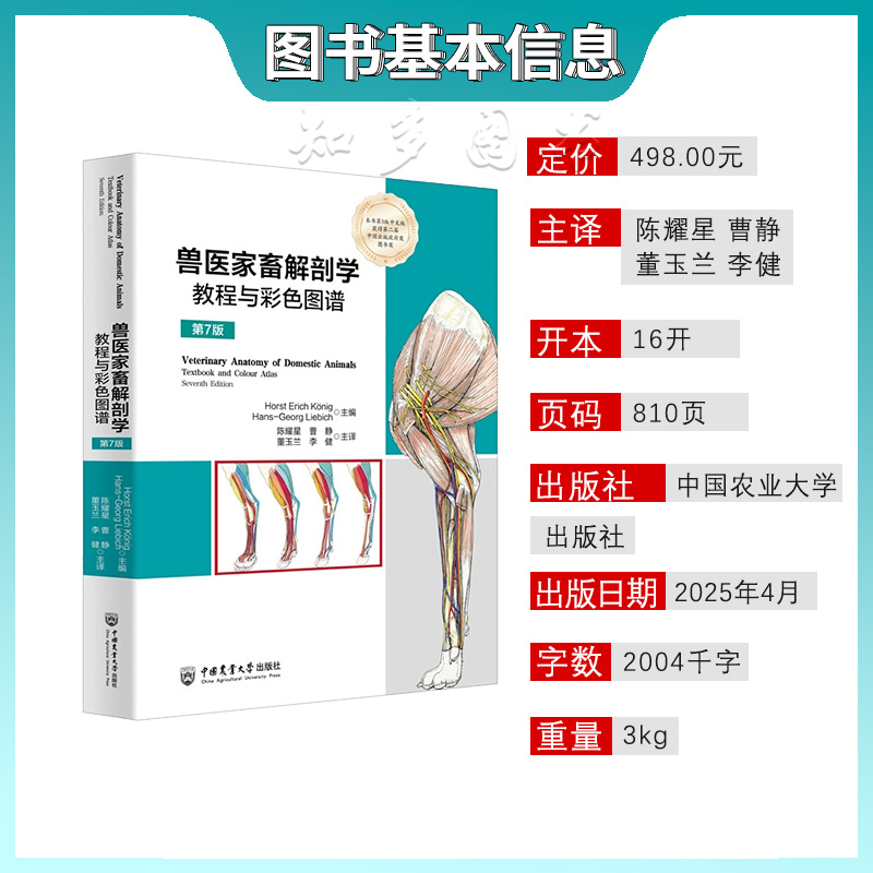 陈耀星 精装 曹静 董玉兰 9787565532009 兽医家畜解剖学教程与彩色图谱 李健主译 第7版