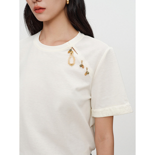 别致翻边袖 新款 口上衣 T恤女2025年秋装 衣香丽影白色国风吊坠短袖