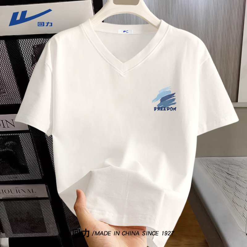 女装 回力V领短袖 大码 夏季 胖mm宽松蓝色上衣正肩t恤女A 女2025新款