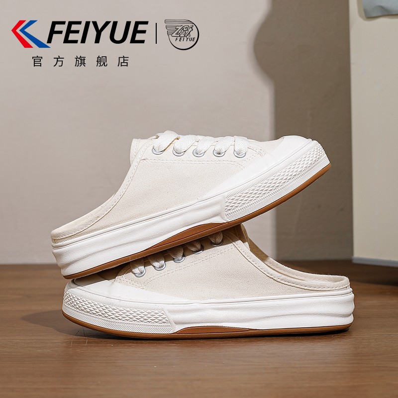 飞跃女鞋 一脚蹬帆布外穿透气拖鞋 半拖女2025夏季 爆款 新款 feiyue