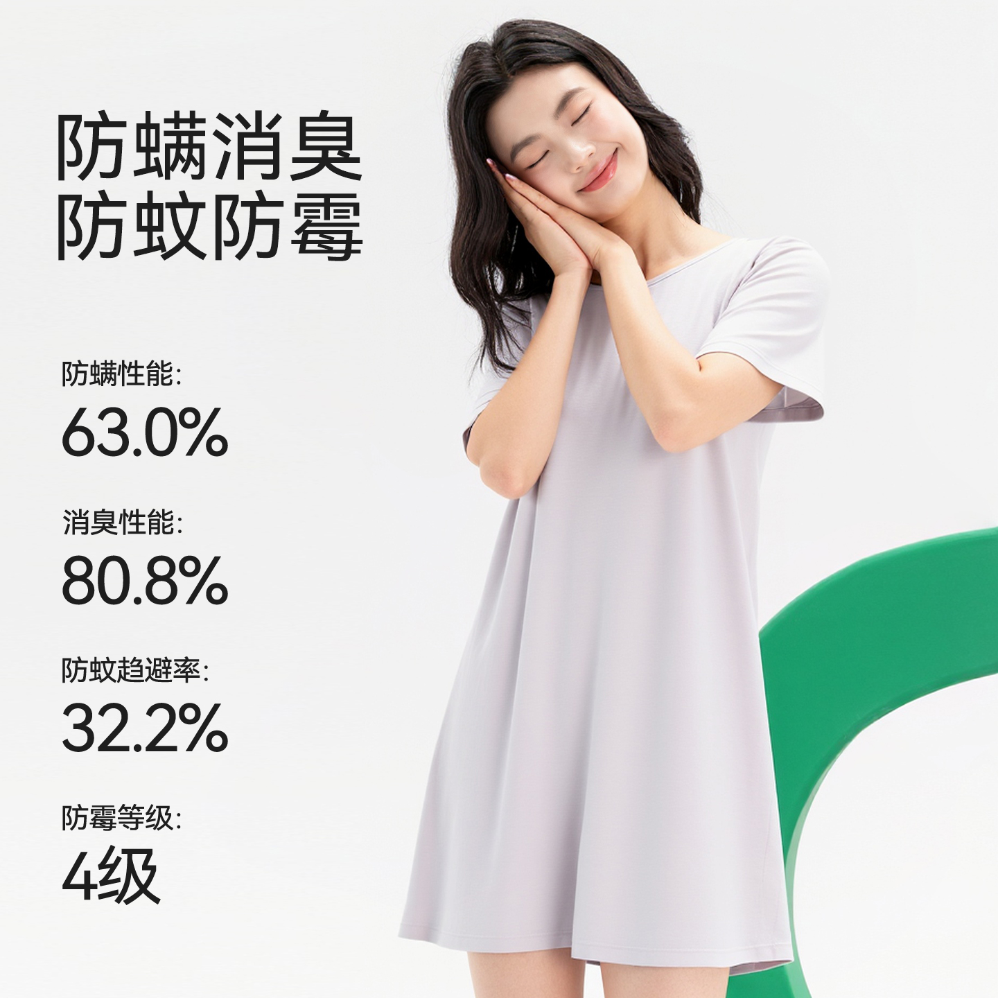 猫人棉绸睡裙女带胸垫夏季 莫代尔家居服 凉感简约甜美冰丝睡衣短袖