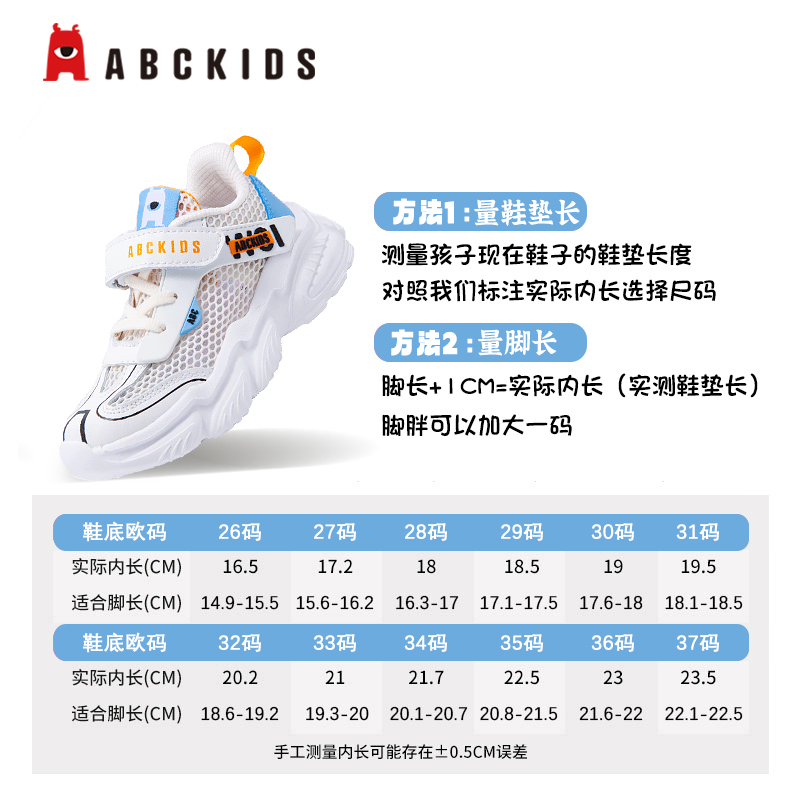 单网网面透气镂空小白鞋 ABCKIDS童鞋 儿童运动鞋 子2025夏季 男童鞋