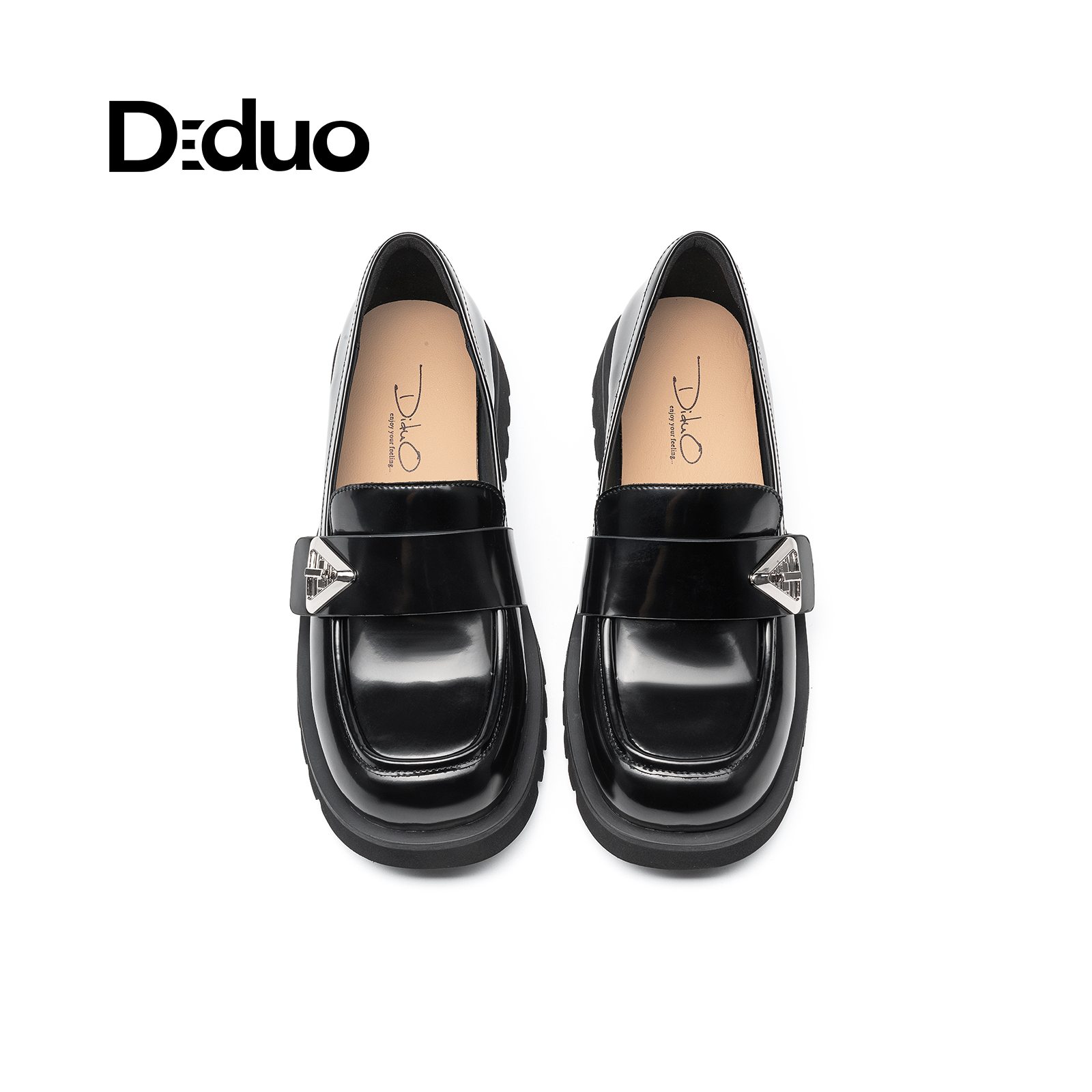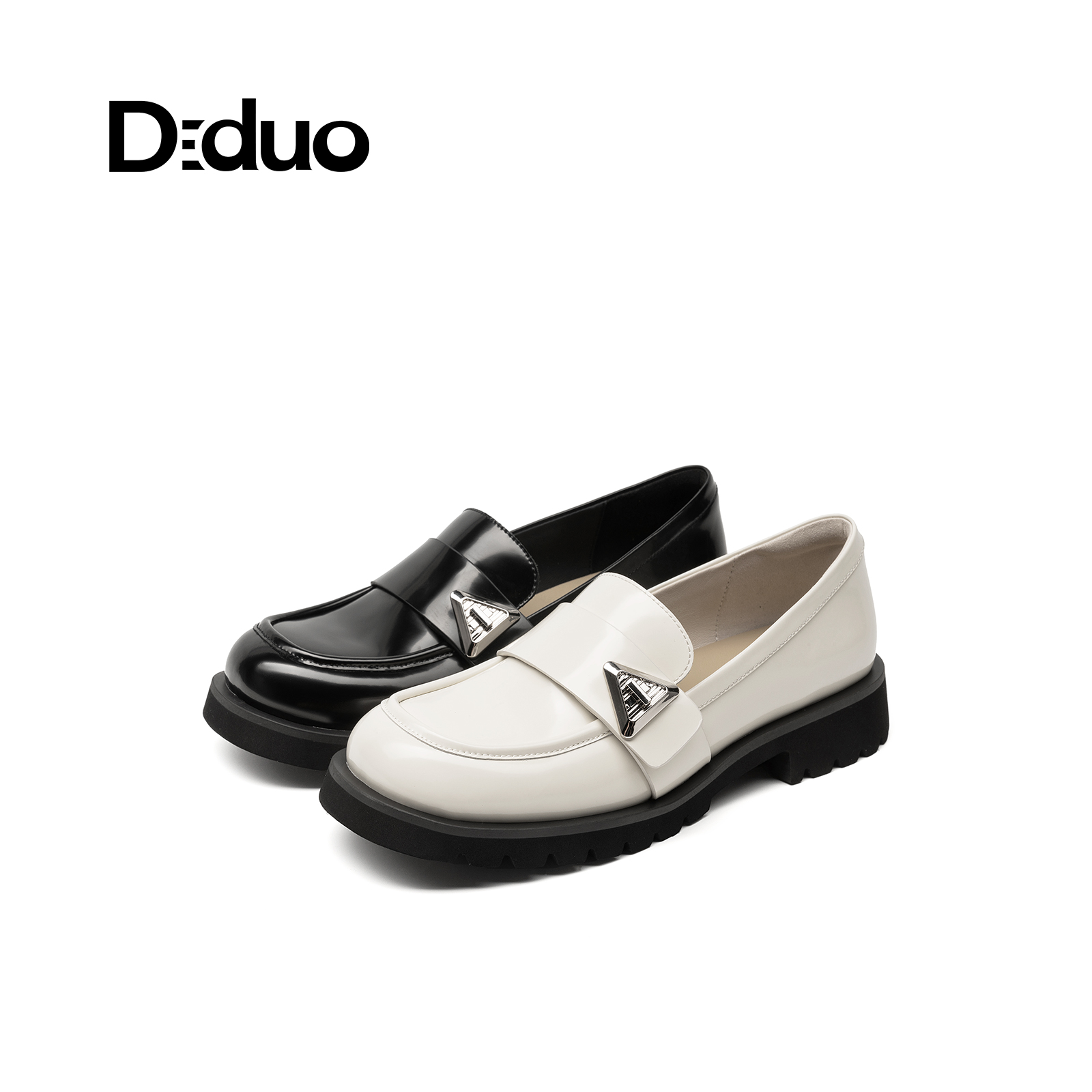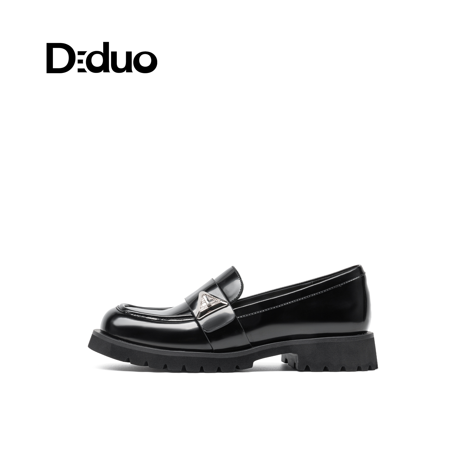 气质单鞋 Diduo 女一脚蹬小皮鞋 牛皮乐福鞋 低跟3CM 迪朵2025秋新款