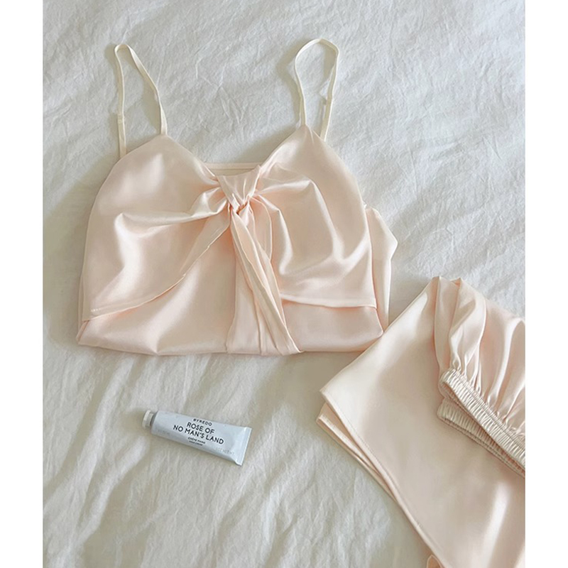 甜美纯欲凉感家居服2025新款 吊带蝴蝶结性感冰丝套装 夏季 睡衣女款