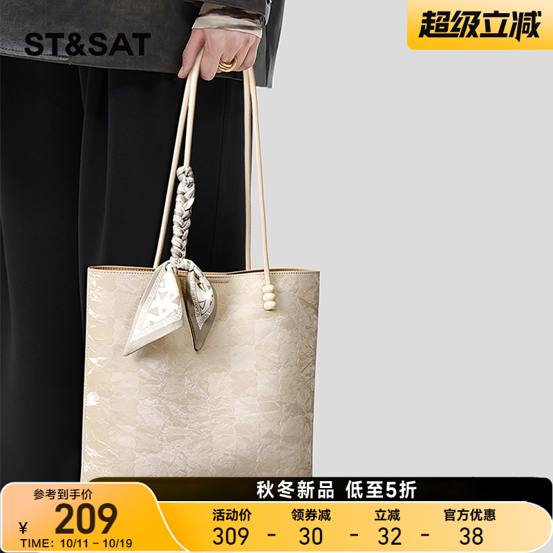 Tagi. 拼色通勤复古单肩包帆布托特手提斜挎包 想象苹果