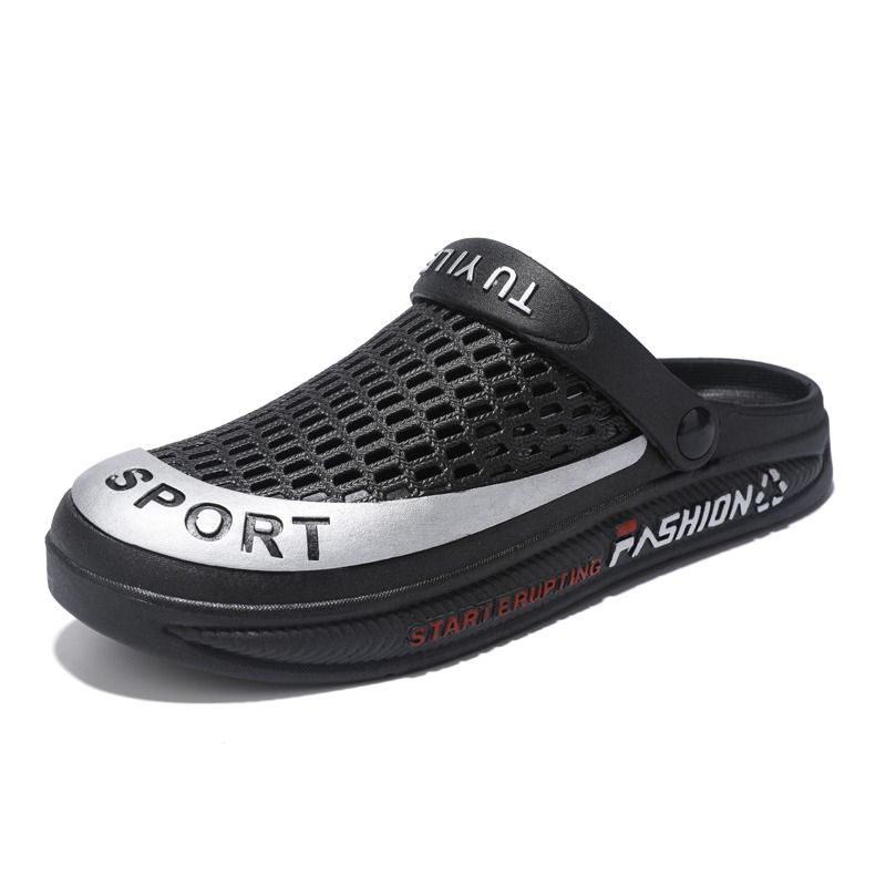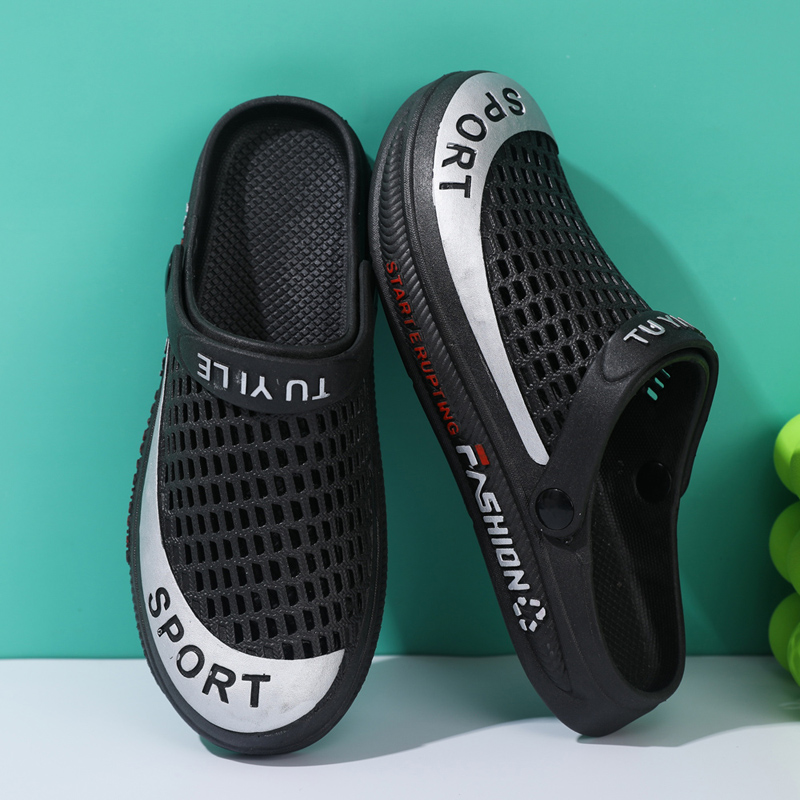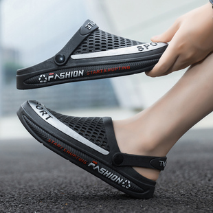 拖鞋 防滑黑色凉鞋 镂空厚底防臭外穿沙滩鞋 夏2024新款 耐磨 男洞洞鞋
