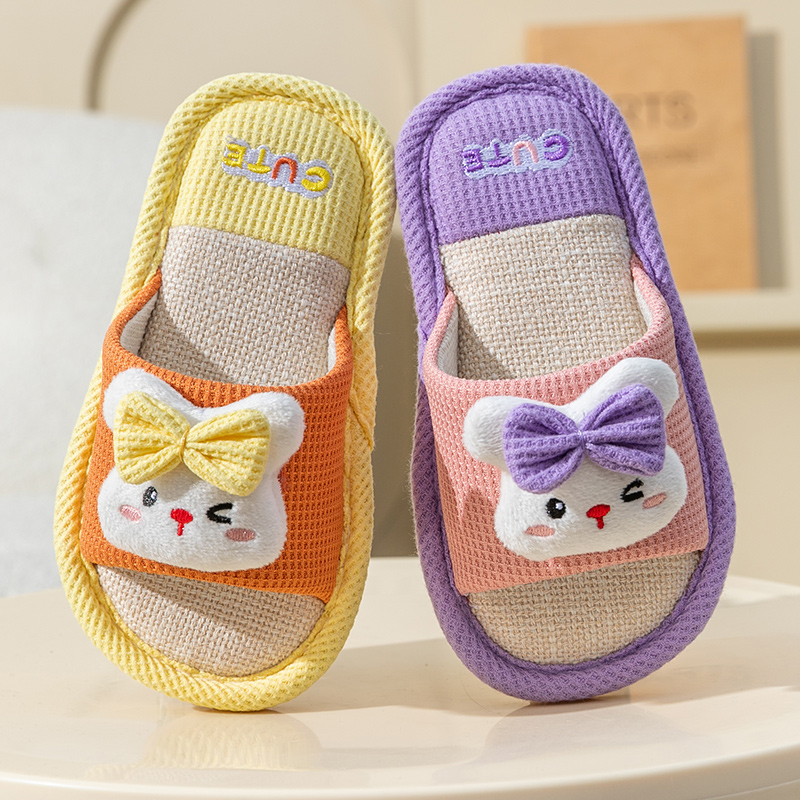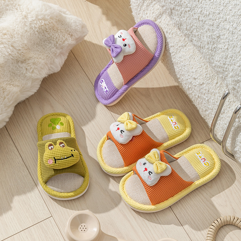 儿童拖鞋 男童 亚麻室内女童幼儿园春秋小孩亲子宝宝地板防滑家居鞋