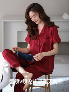 男女士陪嫁 高级感冰丝绸家居服套装 红色结婚睡衣新婚情侣套装 短袖