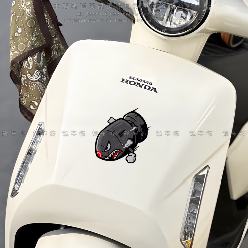 可爱鲨鱼炮弹俯冲车贴创意电动摩托车贴头盔个性 饰防水贴纸 反光装