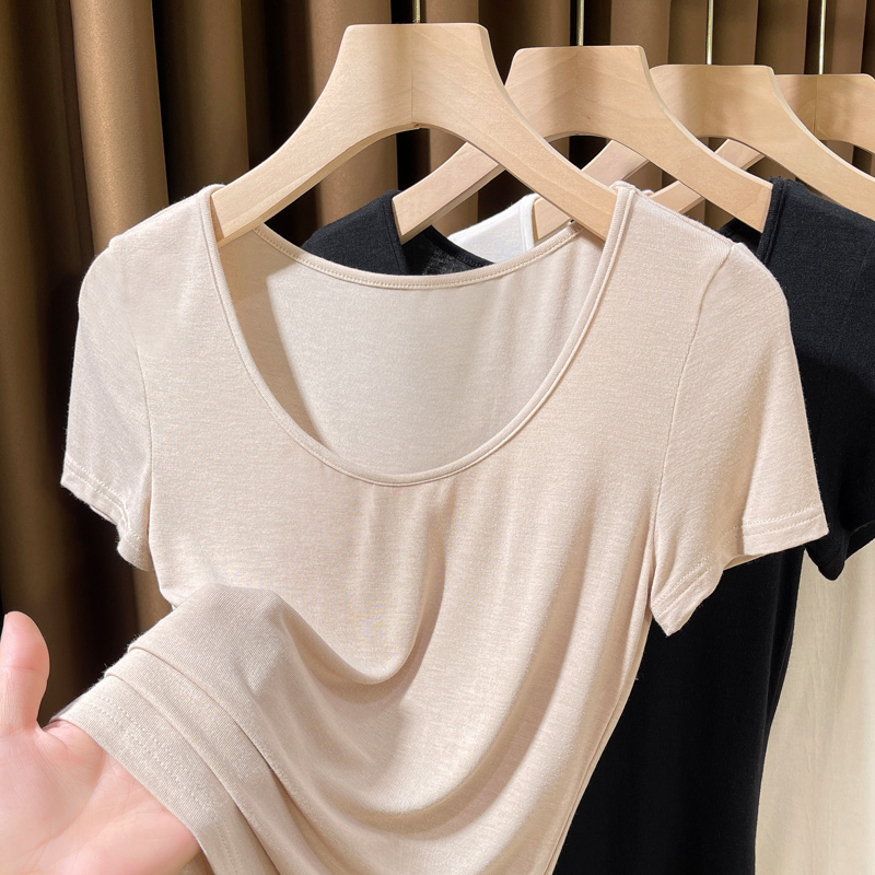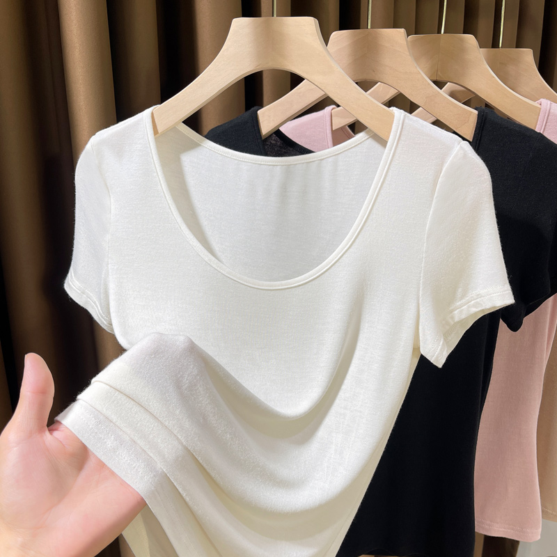 粉色低领打底衫 超薄皮肤衣女半袖 2025新款 大圆领莫代尔t恤女短袖