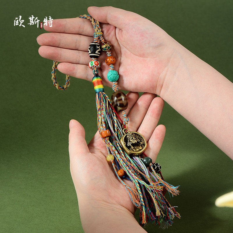 欧斯特藏式 九宫八卦牌吊坠松石镶嵌扎基拉姆挂坠五彩绳黄财神饰品