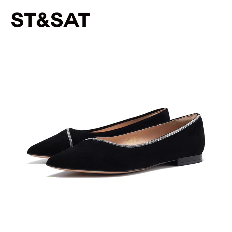 小香风浅口单鞋 百丽女鞋 温柔风软底平底鞋 晚晚鞋 Z8R1DAQ4预 子新款