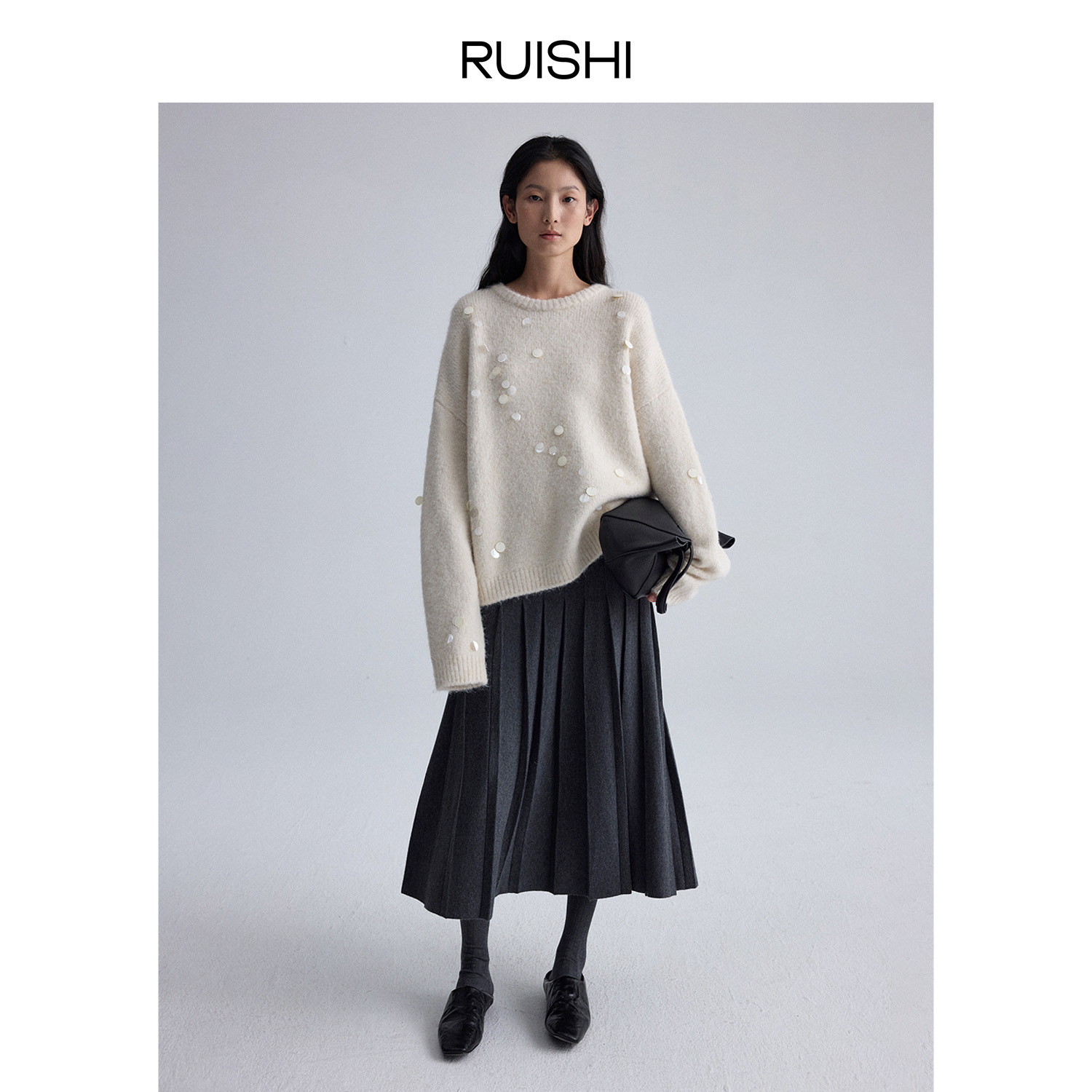 RUISHI芮时 可机洗60支羊毛知识分子风A字遮肉显瘦百褶半身裙女冬