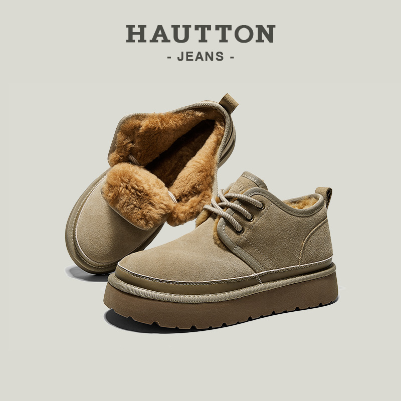 新款 冬季 真皮马丁靴男靴 加绒加厚棉鞋 HauttonJeans东北雪地靴男款