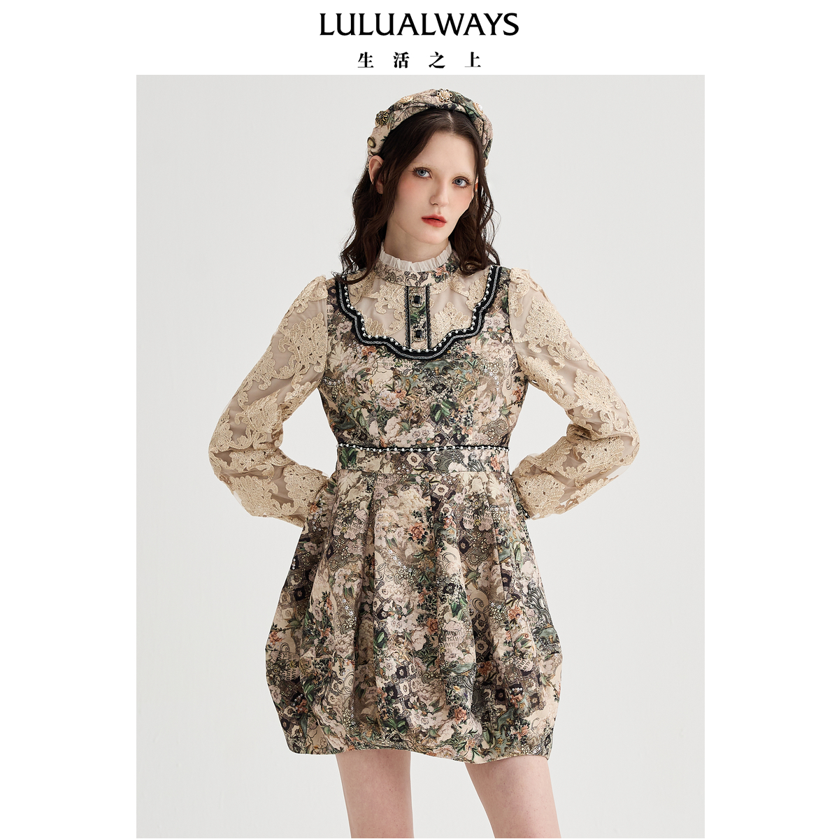 复古典雅气质提花短款 LULUALWAYS 新款 冬季 连衣裙女 商场同款