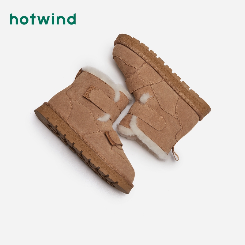子 百搭魔术贴女鞋 热风雪地靴女2025年冬新款 加绒保暖中筒休闲棉鞋