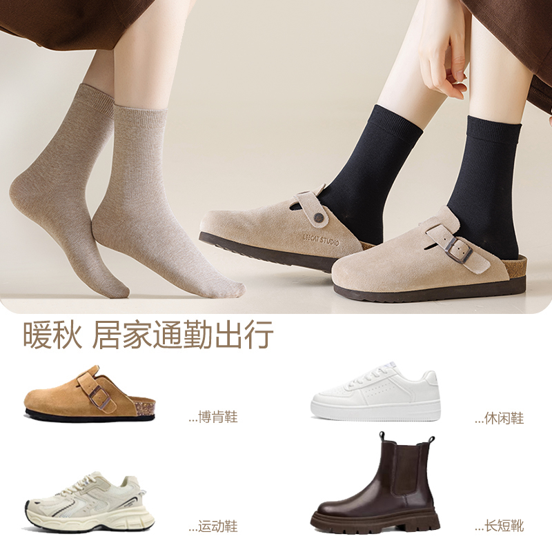 棉伙棉伴海藻袜舒适抗菌防臭男女商务运动纯色裸感中筒袜