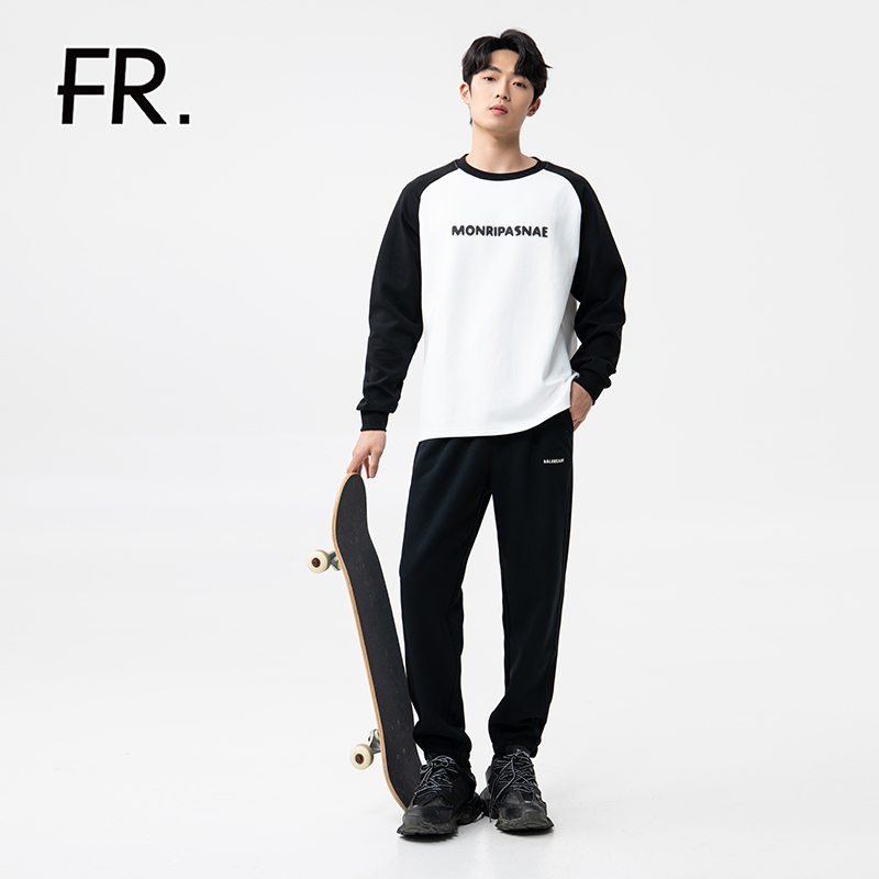 凡人优品圆领长袖 卫衣30MYQ2W052 T恤青少年插肩宽松内搭情侣男士